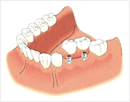歯がない範囲が広い場合など、インプラントで固定するタイプの義歯は、少ない埋入本数で多くの歯を補うことができます。