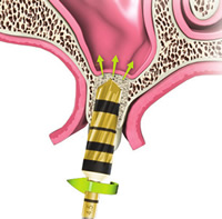 デンサーバーを用いることで、骨補填材等をほとんど使用せずサイナスリフト(上顎洞粘膜挙上術)が可能になります。