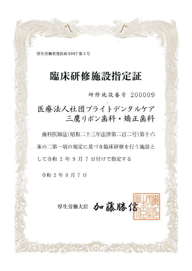 当医院は厚生労働省より「臨床研修施設」に指定されております。